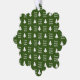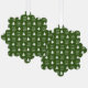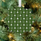A pattern of white Christmas trees accompanies a display image. You can replace it with your company logo. The ornament is forest green.