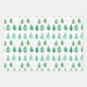 This bright, cheerful Christmas tree-patterned wrapping paper is decorated with whimsical watercolor Christmas trees in shades of turquoise and green.