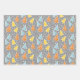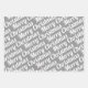 Colourful modern Christmas trees "Merry Christmas" and snowflakes holiday Wrapping Paper Sheet. One sheet displays a cute pattern of colourful Christmas stylised trees in light blue, orange and yellow on grey kraft look paper. The second features snowflakes and the third the text "Merry Christmas" in bold typogtaphy. Personalise it with your text. Please note that if your text takes more or less space customise it to increase or decrease the text size accordingly.