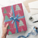 Handmade collage of Christmas Trees cut out of tissue paper on butcher paper background.