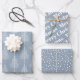 Merry Christmas, trees and polka dots dusty blue holiday Wrapping Paper Sheets. The first sheet features white winter trees on dusty blue background. The second showcases the text :"Merry Christmas" in bold typography and the third displays polka dots-snow. Personalise it with your text. Please note that if your text takes more or less space customise it to increase or decrease the text size accordingly.