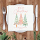 Red font and green Christmas trees party invitation for a festive Holiday party.