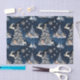 Tissue Paper in a festive Christmas-themed toile pattern of Christmas trees, reindeer and snowflakes, against a dark blue, starry background
