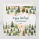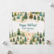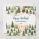 A rustic design of a forest of Christmas trees from a somewhat fanciful vintage, watercolor picture. Our dark turquoise script "Happy Holidays" phrase can stay if you like it, or you can substitute another sentiment. Please be sure to change the example names and date to those that are meaningful to you.