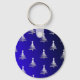 Christmas Trees Silver on Cobalt Blue Key Ring