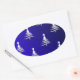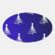 Christmas Trees Silver on Cobalt Blue Oval Sticker