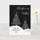 Christmas Trees and Snow, Modern Silver Design Card. Merry Christmas greeting card with modern silver toned Christmas trees and snowy hills on a black background. Add a family name and year to the cover as desired. Art, image, and verse copyright © Shoaff Ballanger Studios, 2022.