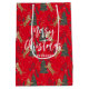 This colourful cartoon-style Christmas tree pattern with a customisable red background.