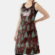 "Christmas Trees Twinkle Sparkle Stars Let it Snow Apron." Perfect for the entire winter season, this Feather Christmas Tree watercolor painted design has twinkle, sparkle stars, snow falling and all over a red burgundy rustic wooden background. Typography text, "Let it snow, let it snow, let it snow!" Art by internationally licensed artist, Audrey Jeanne Roberts, copyright.