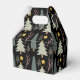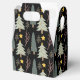 Add some cosy winter cheer to your Christmas party with these modern patterned favour boxes. It has assorted evergreen trees on a black background, with yellow stars and branches scattered throughout. A great option for Christmas and all winter occasions. /cao/c