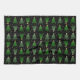 A decorative yet simple motive showing repeated pattern of Christmas trees. Trees are digitally drawn, they have various shades of green. There is a shiny star in top of each tree, and there are also lots of stars glowing against the solid black background. The background colour can be replaced.