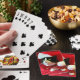These adorable Christmas playing cards feature a pretty tuxedo cat. The cat is wearing a Santa hat and a red bow around her neck. The kitty has an adorable look on her face to make the cutest Christmas playing cards ever for the tuxedo cat lover or any cat lover for that matter!