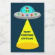 This awesome sheet of Christmas mini wine bottle labels features a digital art image of an alien spacecraft decorated with bright coloured Christmas lights. Inside the UFO looking out through the window there is a green alien with black eyes wearing a festive Santa hat. There is a cone of light coming from the flying saucer. The shadow of a message is being projected to Earth. The message is customisable so you can personalise this design. Holiday greetings from outer space for all Earthlings.