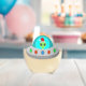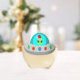 This awesome Christmas stemless wine glass features a digital art image of an alien spacecraft decorated with bright coloured Christmas lights. Inside the UFO looking out through the window there is a green alien with black eyes wearing a festive Santa hat. Holiday greetings from outer space for all Earthlings.
