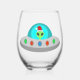 Christmas UFO Ho Ho Alien flying saucer Stemless Wine Glass