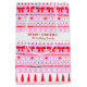 This Christmas Ugly Sweater design features a knit sweater patten in pink, red and white, it features Christmas trees, bows, reindeer and snowflakes. You can customise the greeting and also the family name. See the whole matching collection.