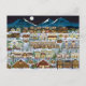 The full moon glows over the beautiful Cascade Mountain Peaks. The small village of Sisters is alive with holiday cheer. The image is taken from an original painting by International Artist Jennifer Lake.