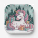 Serve holiday treats with style using party plates featuring a unicorn surrounded by Christmas trees and presents in pink and turquoise tones. Perfect for kids’ parties, festive gatherings, or unicorn-themed celebrations.