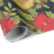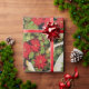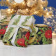 Painting of Christmas Unicorn with red poinsettia flowers and green leaves on a dark background.