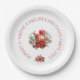 Modern watercolor flowers and red candles holiday vibe paper plates design for Christmas parties with custom red typography—elegant, festive Christmas vibe.