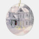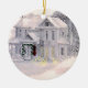 This is a beautiful vintage drawing of a Victorian style home in the snow. The image is on both sides.