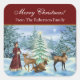 Beautiful Victorian snowy winter personalised, Christmas holiday gift, jar or name tag stickers. These stickers are a wonderful addition to your holiday decorating, or gift giving. They feature a snowy mountain magical Victorian Christmas scene, with a lovely Victorian women wearing a beautiful red Christmas outfit, she is outside in the beautiful snow covered mountains, along with a family of deer. They are all gathered around a beautiful decorated glowing Christmas tree. The top of the sticker has a red background and reads Merry Christmas in an elegant white script. Personalise it with your family name or first name or anything you would like in the easy to use template field area. If you would like to change the font colour or style please click 'customise' and those options will be made available for you as well. These stickers are great for gift wrapping, sealing a holiday package, and especially for a jar or gift label for homemade holiday treats for your friends and family. For more Victorian style Christmas stickers, gift stickers, tags, cards, gifts, stamps and much more please visit our store!