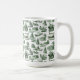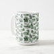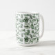 Christmas themed green toile pattern featuring Idyllic village scene at Christmas time with Santa Claus, reindeer and evergreen conifer trees.