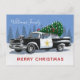 Christmas Vintage Police Car Tree Monogram Holiday Postcard