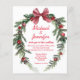 elegant vintage watercolor christmas greenery ornaments wreath red calligraphy , wedding Invitation