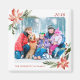 This photo Christmas magnet features family name and year date, and a photo decorated on 2 corners with holiday greenery and poinsettia.