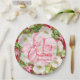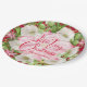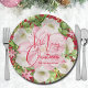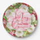 Personalised large paper plates feature modern, elegant winter flowers and a pink poinsettia with Merry Christmas and your name in chic lettering. MATCHING items in our store.