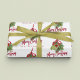 This design features a Christmas holiday greenery foliage red, a stylish trendy calligraphy script font, a watercolor red and green leaves, a botanical leaves leaf style design, a Christmas holiday gift wrap custom, a classic traditional Christmas holly, a Christmas holiday gift wrapping supplies, a winter berry design and a festive fun custom gift wrap