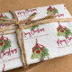 This design features a Christmas holiday greenery foliage red, a stylish trendy calligraphy script font, a watercolor red and green leaves, a botanical leaves leaf style design, a Christmas holiday gift wrap custom, a classic traditional Christmas holly, a Christmas holiday gift wrapping supplies, a whimsical red green striped pattern, a festive fun custom gift wrap