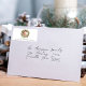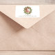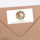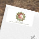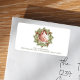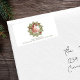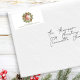 This design features a Christmas greenery foliage wreath return address label with a botanical photo circle wreath pine, a holiday simple minimalist classy, a Christmas holiday mailing supplies, a Christmas holiday sticker address label, a whimsical cute simple typography, a holiday return address sticker label, a traditional simple block style lettering, a red ribbon traditional gradient, creative unique simplistic elegance