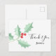 This festive Thank You Postcard is decorated with a watercolor sprig of holly.