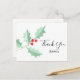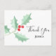 Christmas Watercolor Holly Berries Thank You Postcard