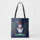 Christmas Watercolor Snowman Custom Navy Blue Tote Bag