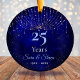 A cool girly Chic blue silver faux glitter Christmas Wedding anniversary Ceramic ornament. Sparkly ,stylish and elegant beautiful inexpensive gift for couples celebrating their marriage. It’s an elegant wedding anniversary keepsake that can be personalised with your special anniversary information.