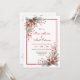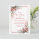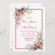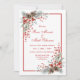 Christmas wedding invitation, the layout features pine branches, pine cones and red berries on a red frame.