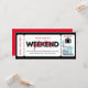 Christmas Weekend Getaway Gift Voucher Ticket. A fun design featuring an old-school white boarding pass with a black suitcase and bold typography on a black background. The bright red accents give the voucher a festive holiday feel. This gift voucher is the perfect Christmas gift for a weekend getaway with your girlfriend, partner, bestie, spouse, mother, grandmother, etc. Just add the destination, date, and any other specifics for the trip and you're all set. PS: If your destination is not New York, you can simply hide the Statue of Liberty silhouette by clicking the Edit button.