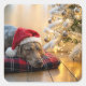 Christmas Weimaraner Dog By a Tree Square Sticker