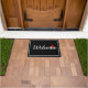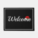 Doormat shown in black and white with a holiday santa hat and white trim.