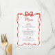 Christmas Whimsical Funky Red Bow Dinner Party Menu