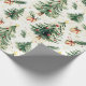 Have a little fun with your pine trees wrapping paper choices when you use this cute Christmas pattern. You have lovely green vintage watercolors, along with some unexpected and pretty touches. The trees are decorated for the Christmas holidays with stars at the tops and scattered shiny baubles, even though pictured out in the winter snow. Cute little red ribboned packages are a feature.