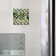 Christmas White Gold Green Plaid with Wreath Magnet.