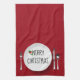 Christmas White Plate and Silverware Kitchen Towel