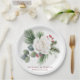 Christmas White Rose and Red Berries Pine Wedding Paper Plate