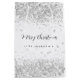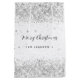 A stylish white background decorated with faux silver confetti, sparkles. Personalise and add your family name. Text: Merry Christmas.