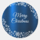 Christmas White Snowflakes Navy Blue Classic Round Sticker. Elegant, beautiful, modern design. With easy to use Zazzle menu; My designs can encourage customers to create their own unique items. Fonts style, size and colours can be changed. Matching items available.