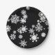 Christmas White Snowflakes On Black Paper Plate